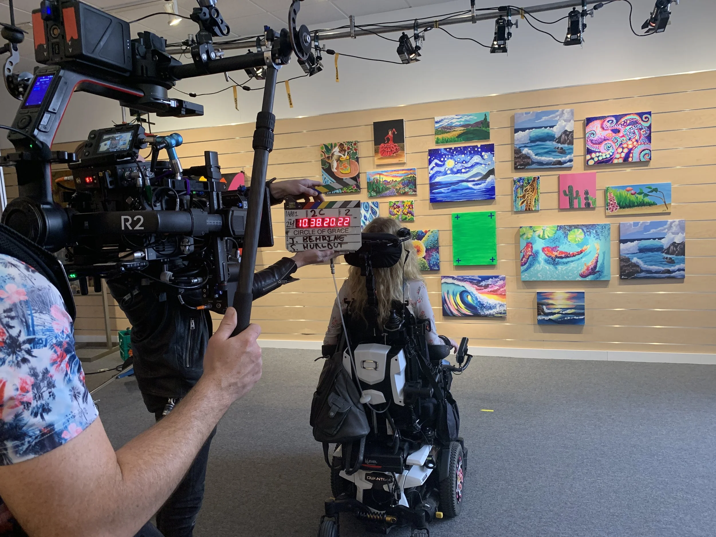 “Circle of Grace” was conceived by Santa Barbara television director, photographer John Behring [dir. Law & Order, FBI International] as a way to celebrate the courage and creative tenacity of Grace Fisher. John’s still photography is exhibited at the Fine Line Gallery in the La Cumbre mall where the Grace Fisher Foundation’s Creative Arts Clubhouse is a neighbor. The concept sprang from a performance by the State Street Ballet at the gallery’s monthly 3rd Friday open house. John was inspired to create a short film that brings ballet out of the formal setting of the stage and into the real world. He aimed to merge this concept with Grace as the central figure in a story that explores her vivid imagination.